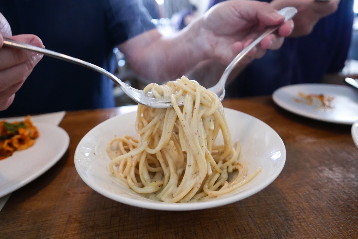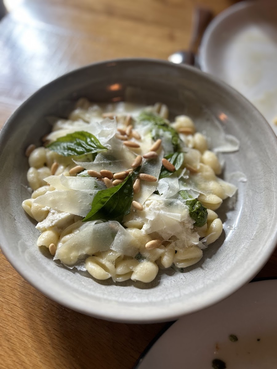 Came here for lunch on a Saturday with reservations and sat at the bar, which was a great call. Fun energy, great people-watching, and genuinely cool, attentive bar staff. Yes, it’s a bit pricey, but the food and service made it worth it. The gnochetti was rich and filling, and I appreciated the advice not to mix it all together, it let me enjoy the distinct layers of ricotta, basil, pine nuts, and pecorino instead of turning it into one blur. Dessert was completely unnecessary and therefore mandatory. The affogato was the perfect finish, strong espresso, creamy gelato, and just indulgent enough. I was so full afterward that I walked home purely to convince myself I had earned the meal.